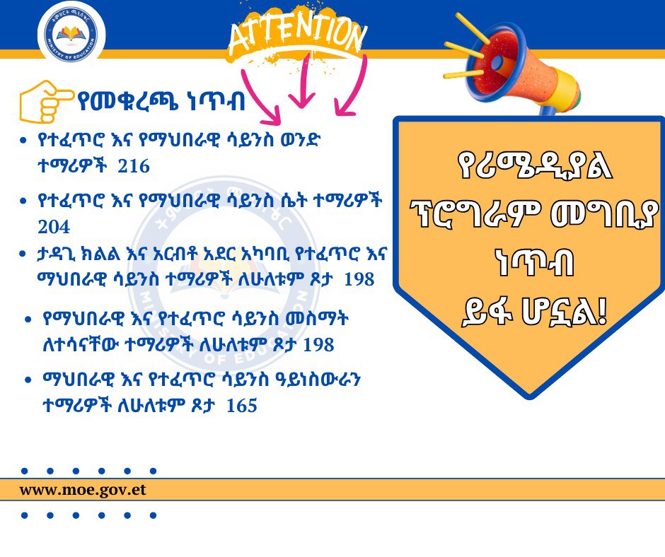 የሬሜዲያል ፕሮግራም መግቢያ የመቁረጫ ነጥብ ይፋ ሆነ