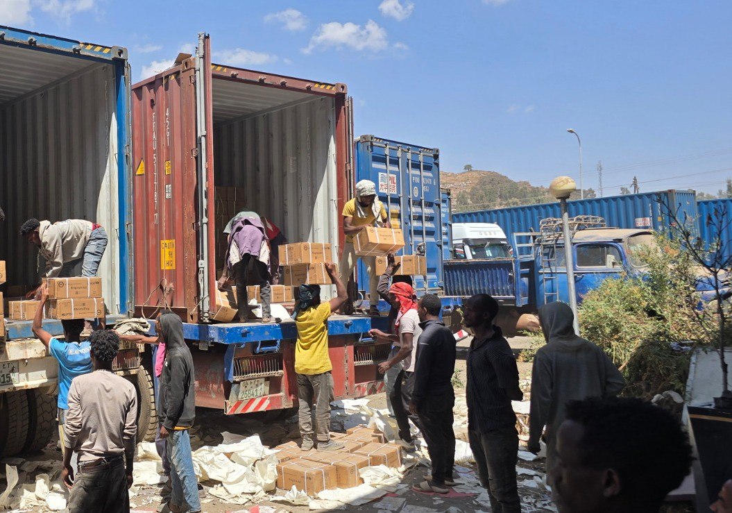 (February 05/2018) The pre-primary and primary school textbooks published by the Ministry of Education with the support of partners are being unloaded at the Gelan Book Distribution Center.